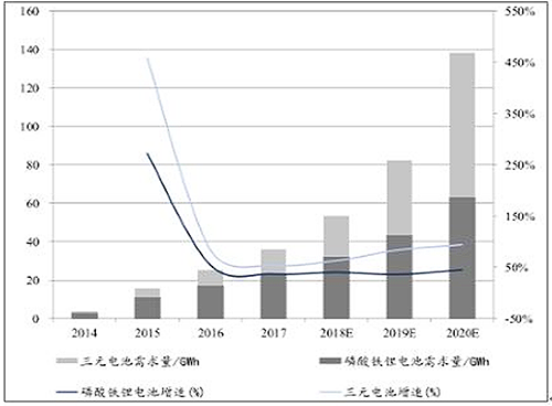 動力電池需求量逐年攀升,預計2020達138GWh