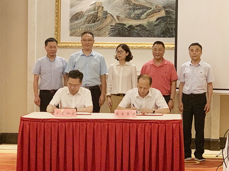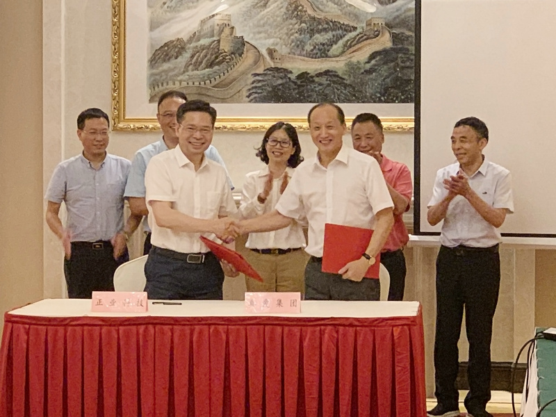 ▲正業(yè)科技集團(tuán)董事長(zhǎng)徐地華與真愛(ài)集團(tuán)董事長(zhǎng)鄭期中簽署《戰(zhàn)略合作協(xié)議》