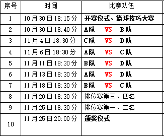 籃球技巧大賽項目為:運球繞樁、精準傳球、運球上籃、投籃挑戰,由4支球隊分別挑選2名球員攜女領隊參與,完成比賽的時間最短的隊伍獲勝。
