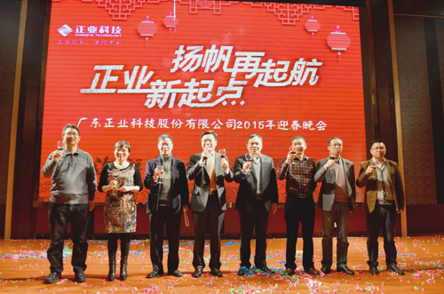 2015年2月9日廣東正業科技股份有限公司新春年會在帝金酒店隆重召開,董事長徐地華先生、經營專家梁志立先生、儀器裝備事業部總經理徐國鳳女士、材料事業部總經理徐地明先生及部分優秀供應商出席此次年會。